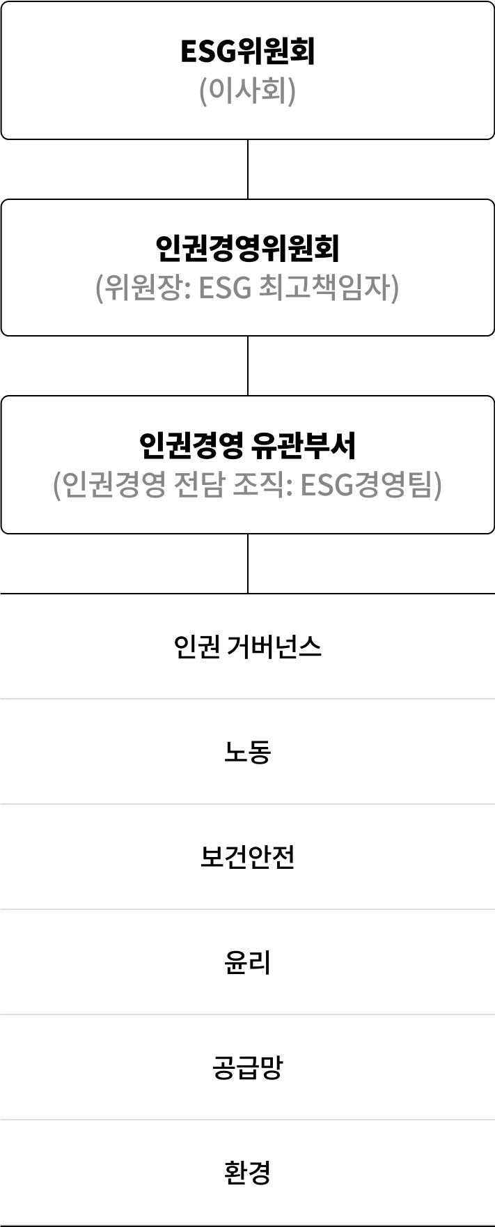HD현대일렉트릭은 인권 보호와 증진을 위해 UN세계인권선언(Universal Declaration of Human Rights), UN 기업과 인권에 대한 이행 원칙 (United Nations Guiding Principles on Business and Human Rights), OECD 다국적기업 가이드라인(OECD Guidelines for Multinational Enterprises), OECD 기업책임경영을 위한 실사지침(OECD Due Diligence Guidance for Responsible Business Conduct), 국제노동기구(International Labour Organization)의 직장 내 기본 원칙 및 권리 선언 등 인권 관련 협약, 그리고 EU 기업 지속 가능성 실사 지침(Corporate Sustainability Due Diligence Directive) 등이 명시한 인권을 존중하기 위해 최선을 다하고 있습니다. HD현대일렉트릭은 사업을 운영하는 모든 지역과 국가에서 인권, 노동, 환경, 윤리 등의 가치를 존중하고 관련 법률을 준수함으로써 국제적으로 공인된 인권 존중의 세부 실천 항목에 대한 회사의 신념과 약속에 따라 사업을 수행하고자 노력하고 있습니다. 이를 위해 주요 잠재ㆍ실제적인 인권 침해 요소를 식별하고 예방 및 개선하고자 인권 실사를 정기적으로 수행하고 발견된 잠재ㆍ 실제적인 인권 리스크를 완화하기 위해 부정적인 영향을 시정하고, 진행 상황을 추적 및 측정하며, 그 결과를 대외적으로 공개합니다. 또한, HD현대일렉트릭은 사업 운영 과정에서 임·직원을 포함한 이해관계자의 인권을 침해하는 사례가 발생하지 않도록 이를 관리 및 감독하는 이사회, 별도의 인권경영위원회, 인권경영 유관 부서와 전담 조직이 포함된 인권경영 거버넌스를 구성하여 운영합니다. 아울러, 체계적인 인권경영 거버넌스를 통해 인권경영 정책의 수립과 향후 고도화, 인권경영위원회를 통한 주요 인권 관련 사항 보고와 감독, 전담조직을 통한 인권영향평가 수행과 개선, 그리고 인권침해 관련 고충 사항에 대한 구제의 실행 등 구체적인 이행 계획과 절차를 수립하여 인권경영을 실천하고 있습니다. 특히, HD현대일렉트릭은 업종의 특성을 고려하여 사업장의 근로환경과 안전 및 보건, 협력회사와의 상생 및 동반성장, 환경과 지역사회에 대한 책임 및 기여 등을 중점적으로 관리하고 향상시켜야 할 인권 관련 요소로 인식하여 체계적으로 관리하고 모니터링합니다. HD현대일렉트릭의 본 인권경영선언문이 HD현대일렉트릭의 임·직원뿐만 아니라 고객, 주주, 협력회사, 지역사회, 정부를 포함한 모든 이해관계자에게도 적용 및 준수될 수 있도록 인권경영 강화에 앞장서겠습니다. 무엇보다도 HD현대일렉트릭은 임·직원을 비롯하여 공급망 내 근로자, 고객, 지역사회 등 여러 이해관계자들과 소통하고 협조하며, 회사의 정책과 국내 및 해외 현지 법률이 상충되는 상황이 발생할 경우, 관련 법률을 준수하는 동시에 UNGPs 등에 따라 국제적으로 인정된 인권 존중가치에 대한 회사의 약속을 지킬 수 있도록 최선의 방법을 모색할 것입니다. 감사합니다. 2025년 6월 23일